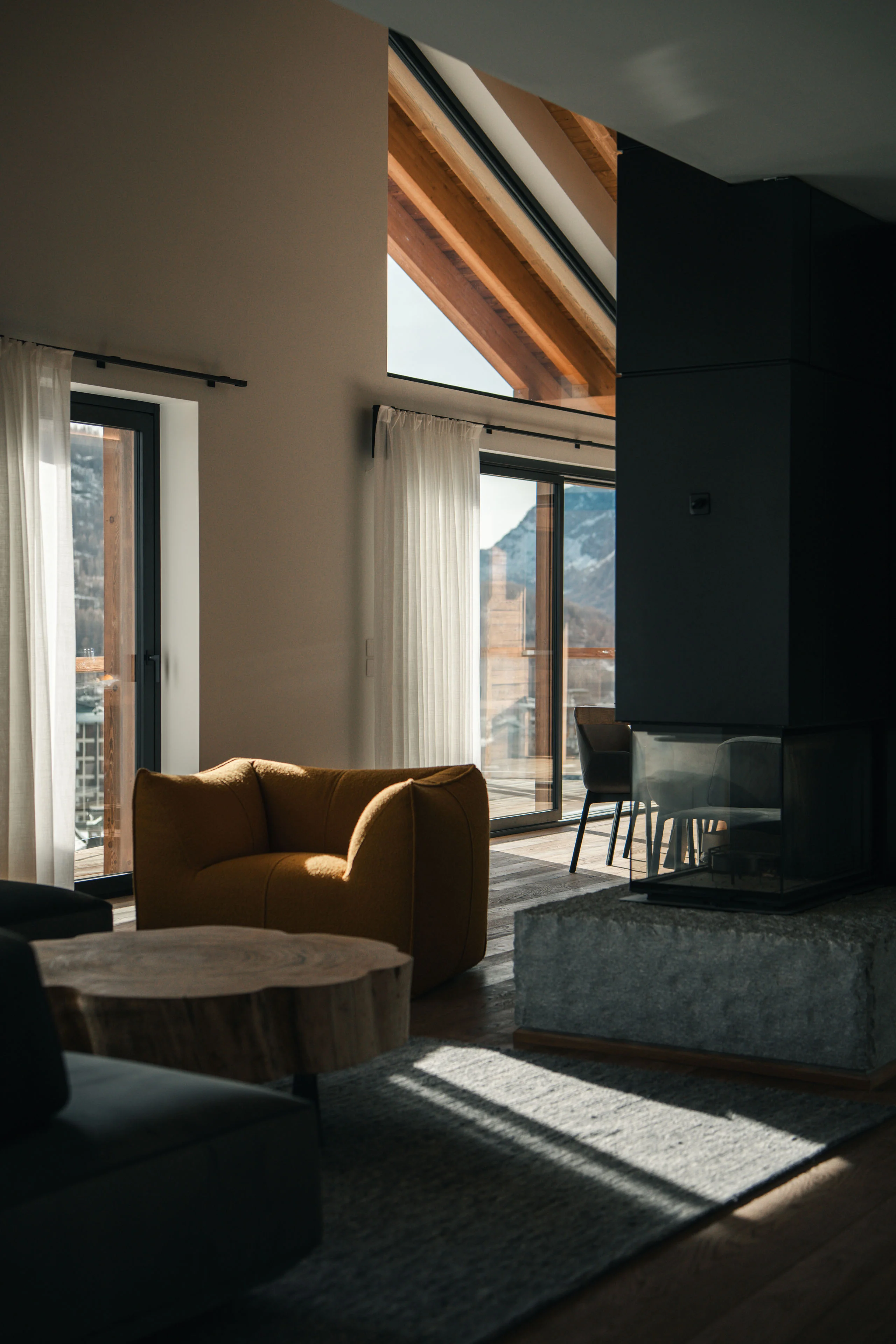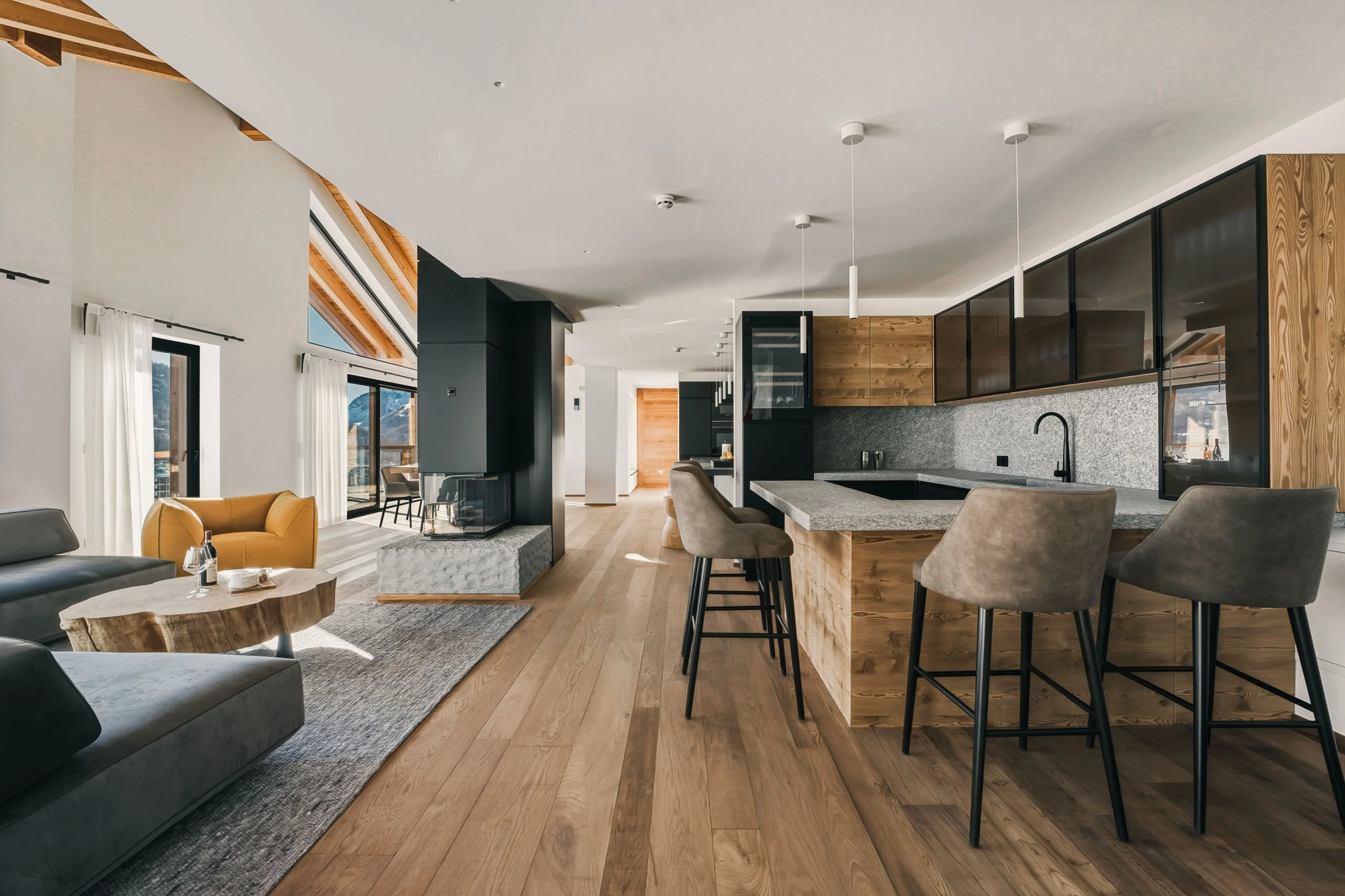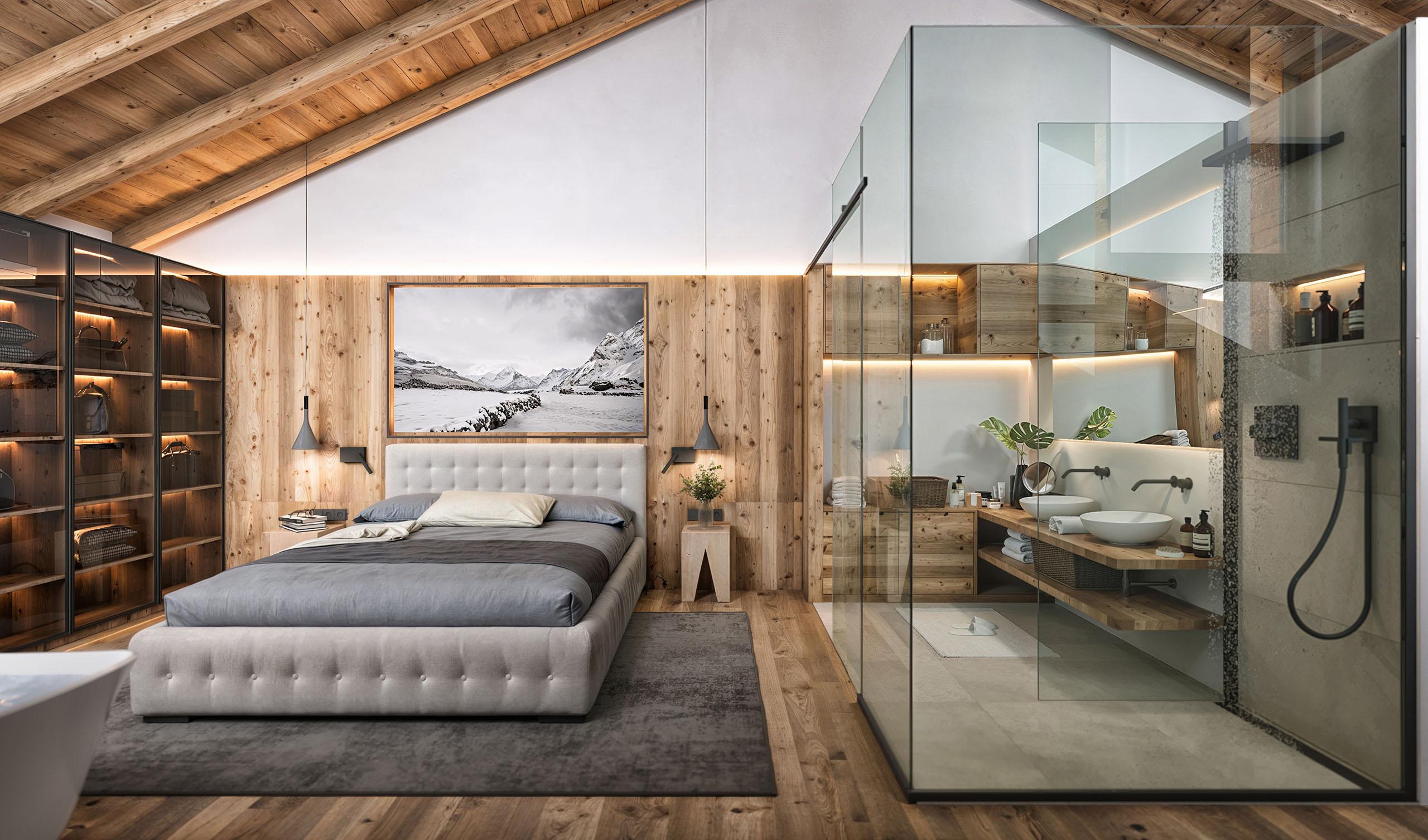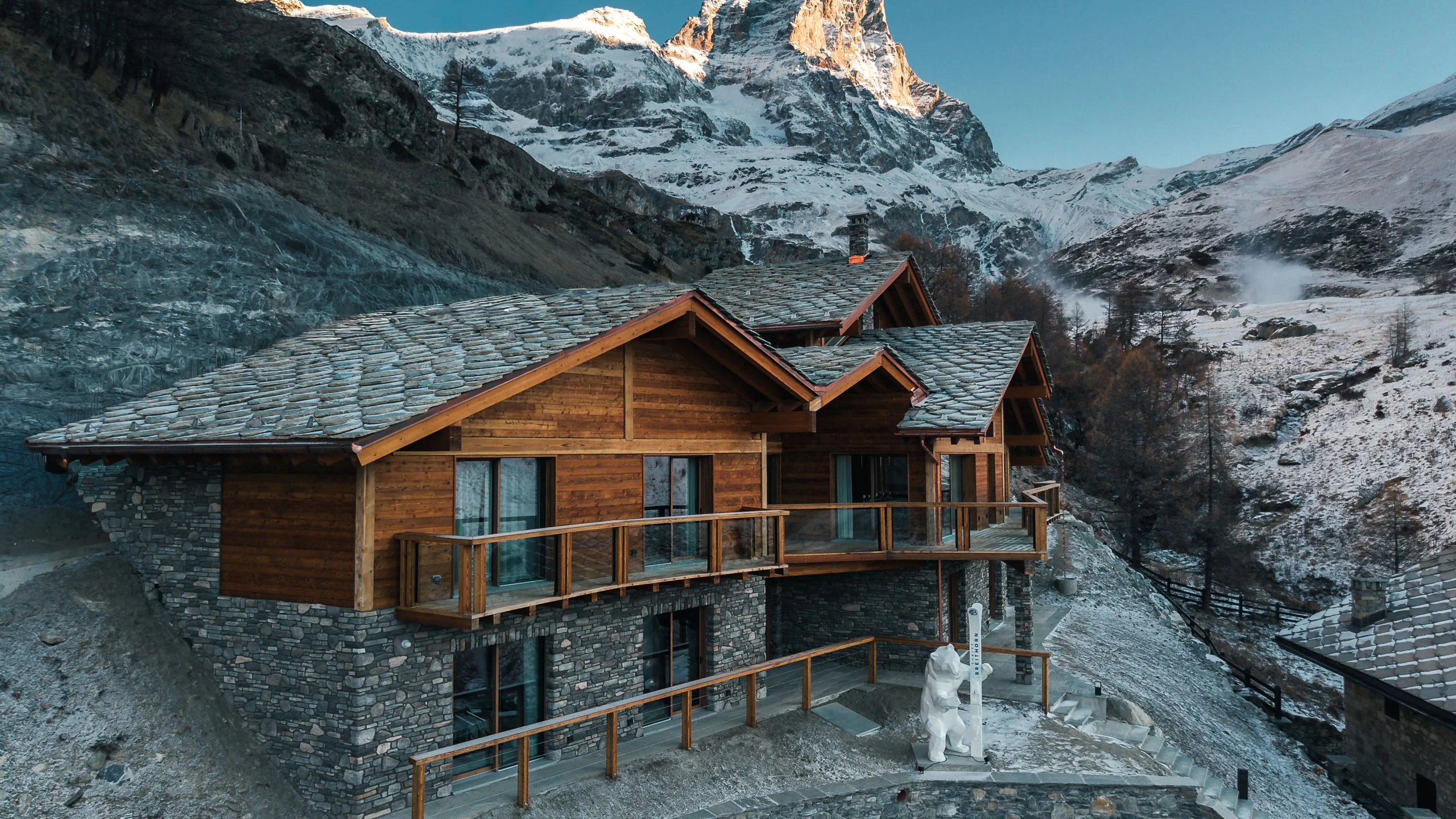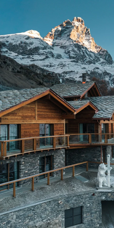 Siete arrivati nel vostro rifugio di pace in Valle d’Aosta! Un luogo dal fascino unico, lontano dal caos e immerso nella pace di Cervinia. Le aspettative sono alle stelle e lo Chalet Breithorn è pronto a superarle. Fuori, la luce illumina le sue travi in legno, e fa risaltare gli elementi in pietra locale. Entrate, e vi lasciate accogliere dai colori caldi. C’è aria di casa. Il giusto mix tra stile alpino e modernità. Posate lo sguardo sulle rifiniture sofisticate, sull’arredo di design. Vi accomodate su un comodo divano e guardate fuori dalle vetrate panoramiche: la singolare vetta del Cervino vi saluta e vi dà il benvenuto.